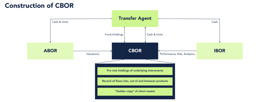 The introduction of the Client Book of Record (CBOR) places the client at the heart of the operation. Defined as the ultimate client “look through,” a CBOR goes beyond internal structures, showing client in- and outflows and providing insight into fractions of the underlying assets implied by the unit holding in any retail or commingled products. This shift directly addresses the limitations of existing platforms, including the Investment Book of Record (IBOR) and the Accounting Book of Record (ABOR), establishing a client-centric approach to investment management.