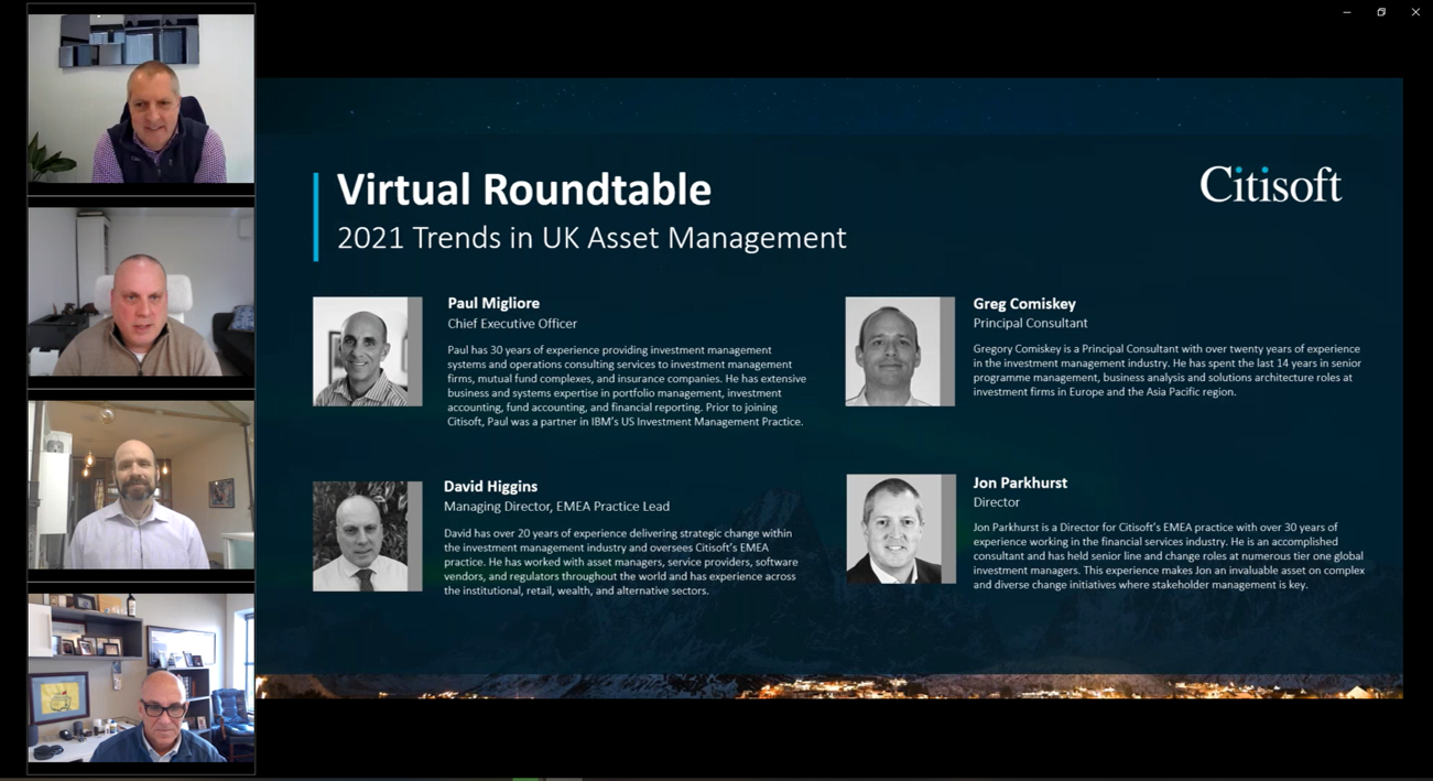 View our market experts discuss these top trends shaping the UK and European asset management landscape in 2021. We will cover lessons learned on the ground in 2020, Brexit, the rise of vertically integrated technology and services, new market entrants, and more.